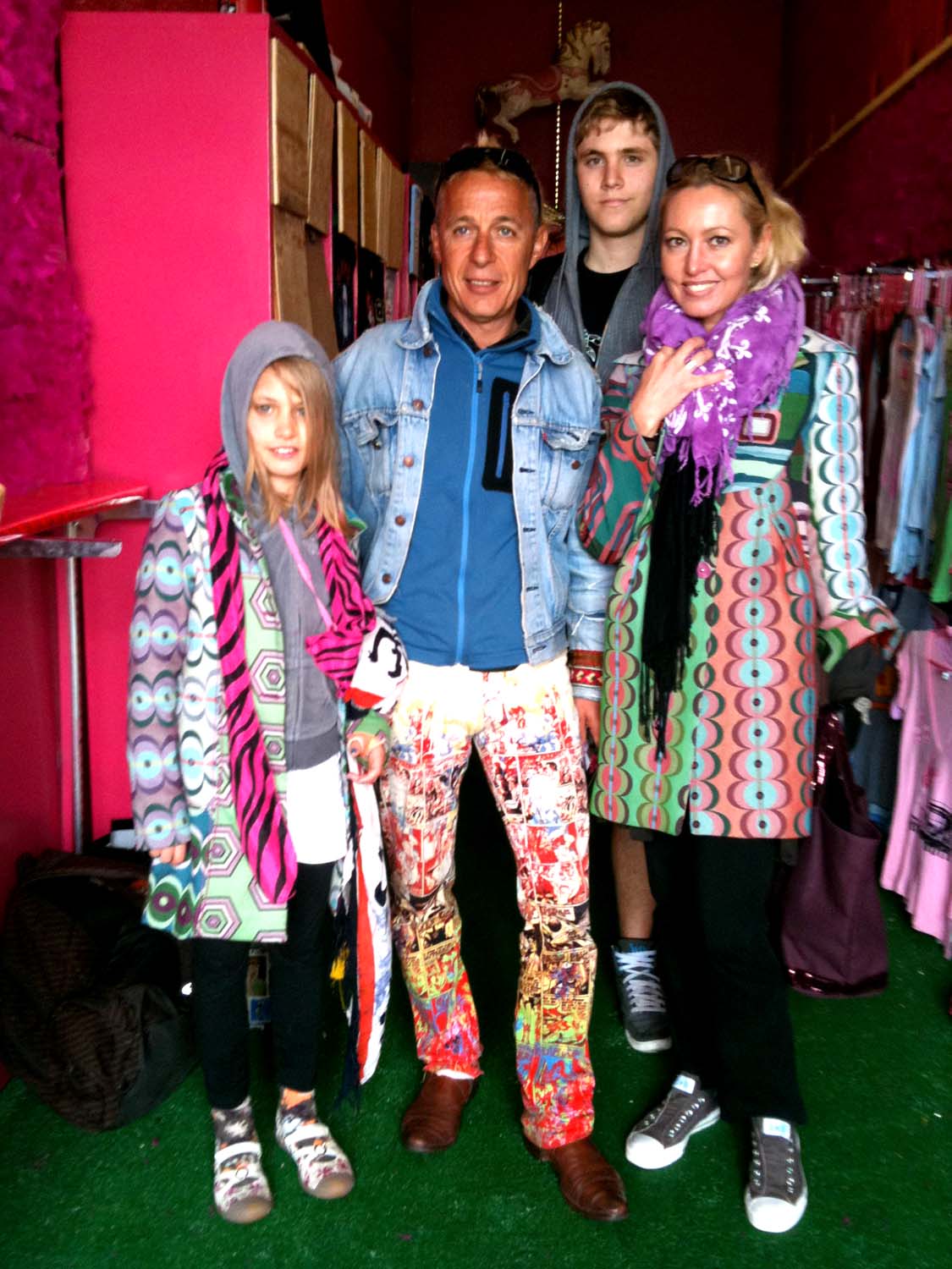 The Lucien family lit up the Lola Star Boutique with their stunning patterns and colors the moment they walked through the door! Music and event planner, Elsen Lucien usually rocks Luxembourg with his amazing electronic global music parties! Today, however, he was rockin’ Coney Island with his amazingly stylish family! Their colorful outfits seemed to glow as they walked down the boardwalk on this densely foggy, gray day! We hope the Lucien family enjoys the rest of their vacation in NYC!!